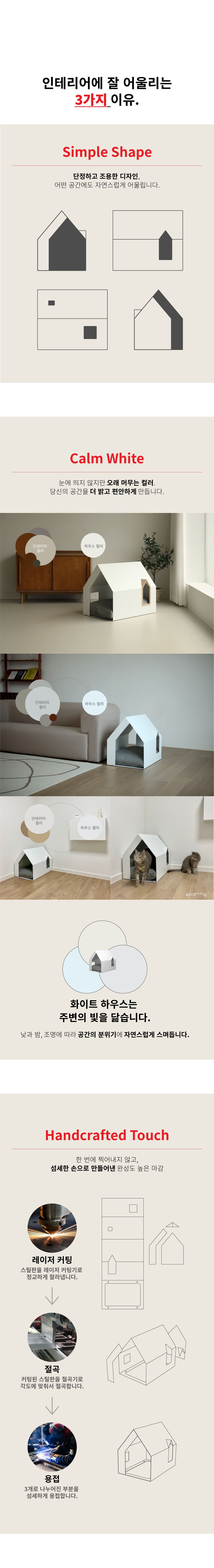 우리가 사는 집의 모습을 닮은 반려동물 하우스 입니다. 간결하면서 비례의 미가 돋보입니다.