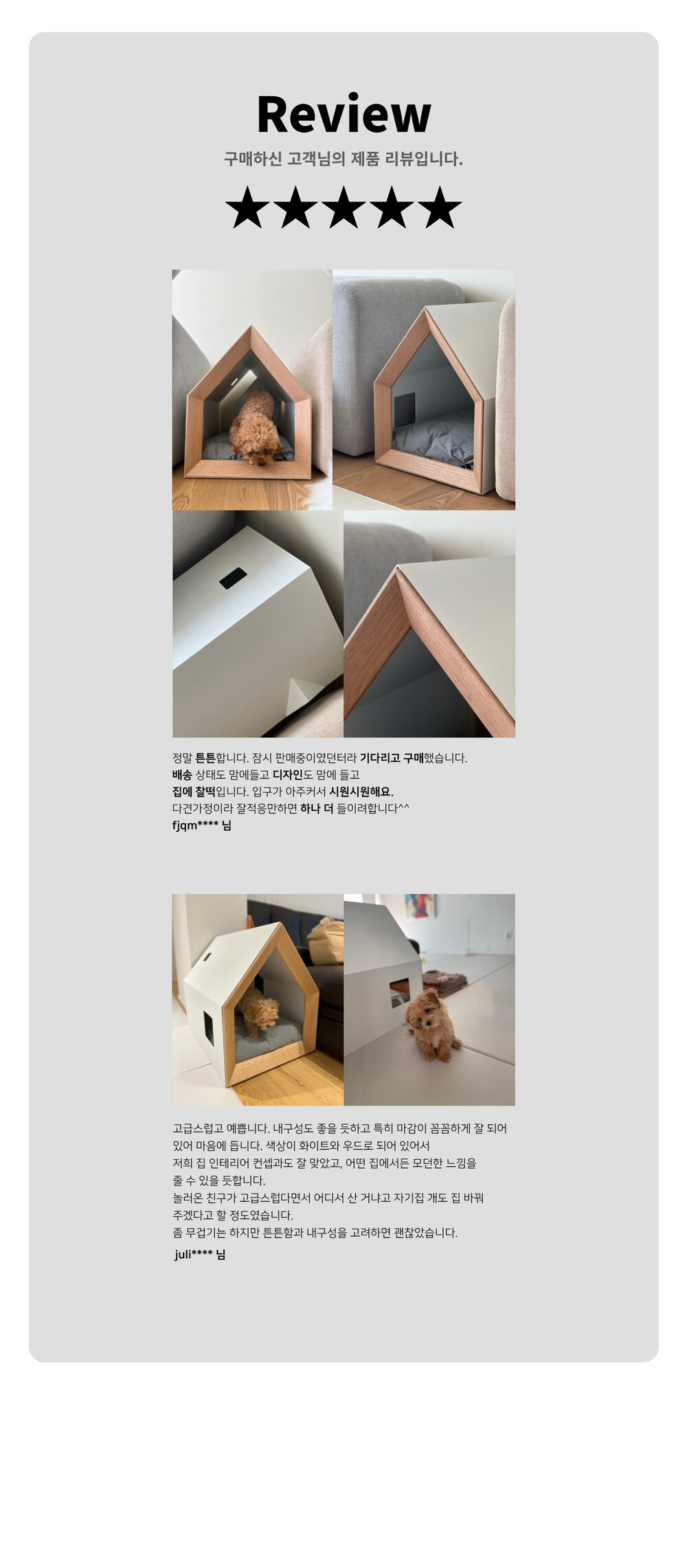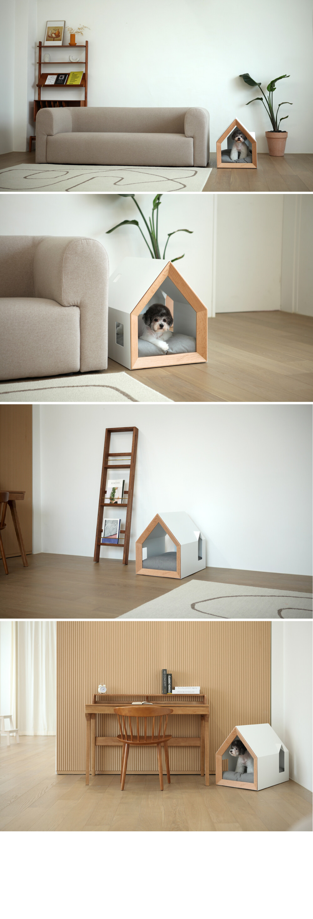 우리가 사는 집의 모습을 닮은 반려동물 하우스 입니다. Steel과 Red Oak 원목이 조화로운 따뜻한 느낌의 하우스 입니다.
