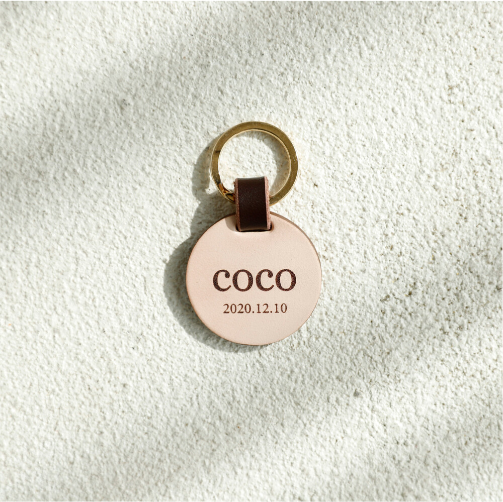 황동고리에 반려동물의 이름을 새긴 andantte의 네임팬던트 D40을 걸어주세요.