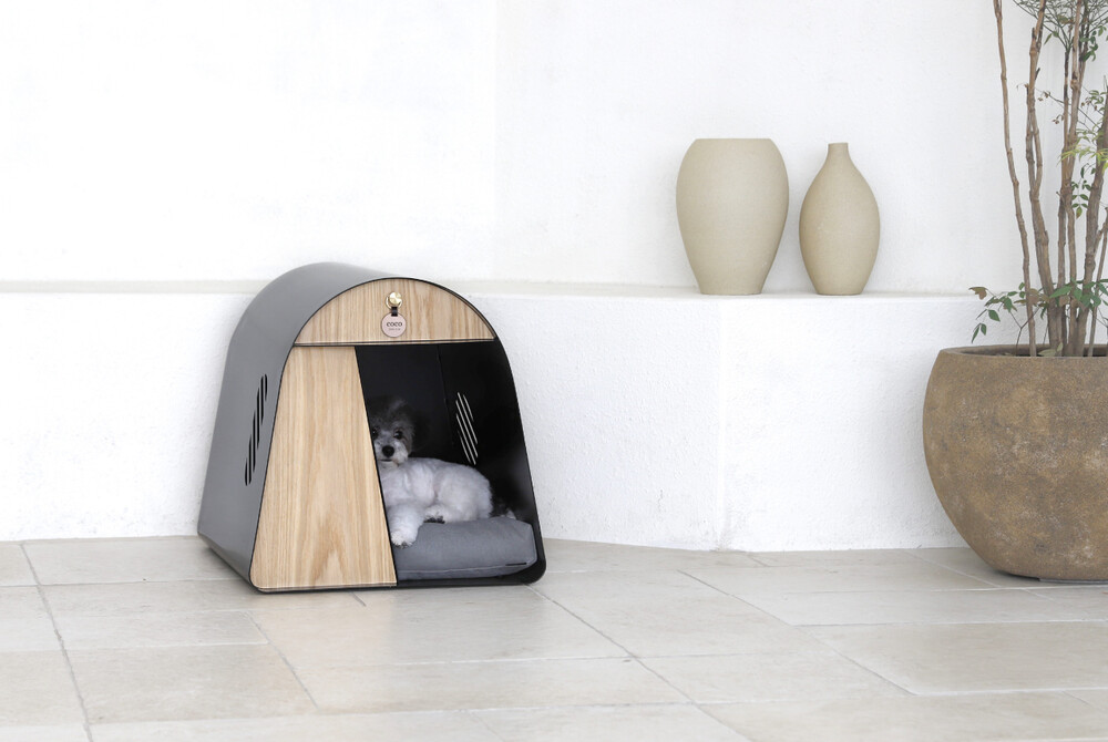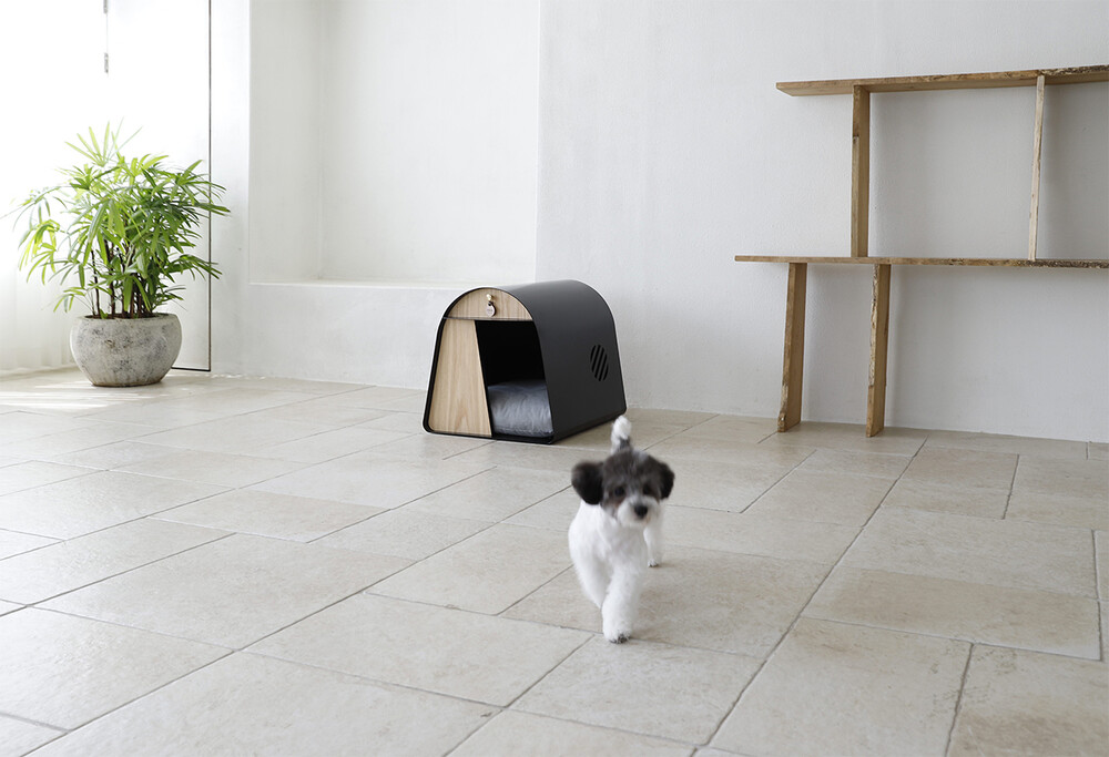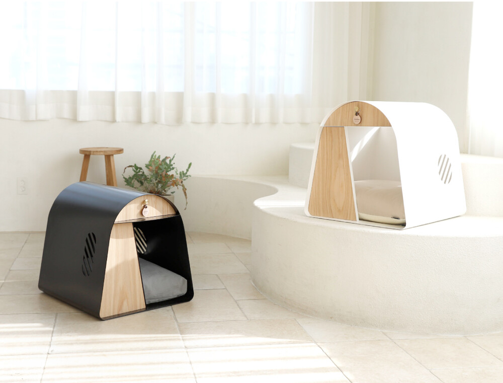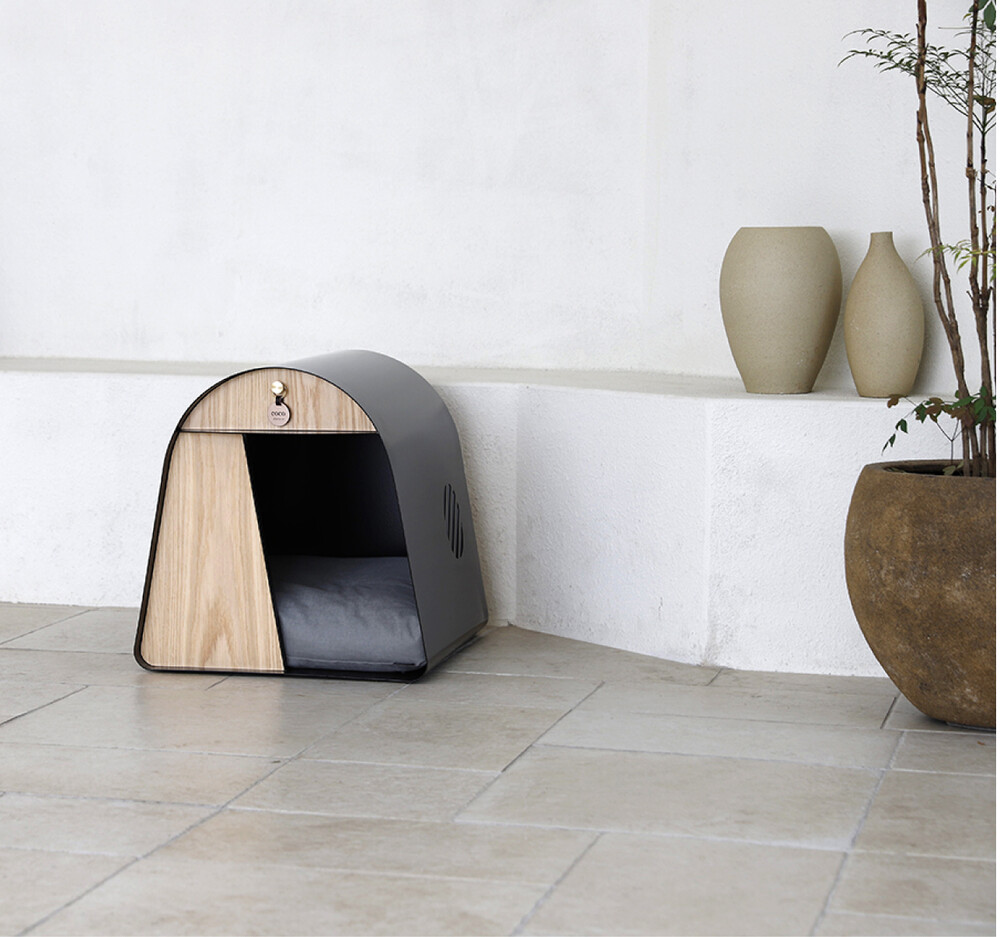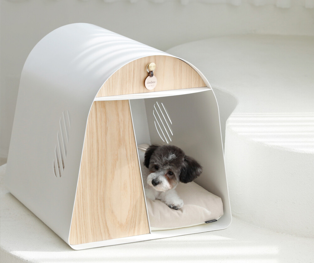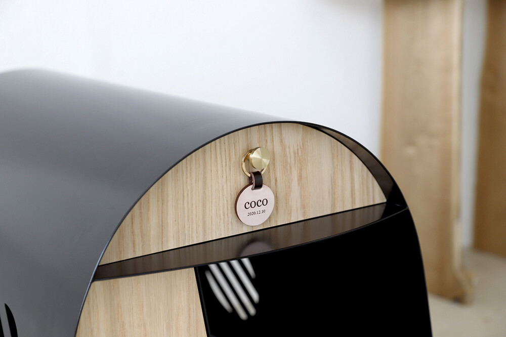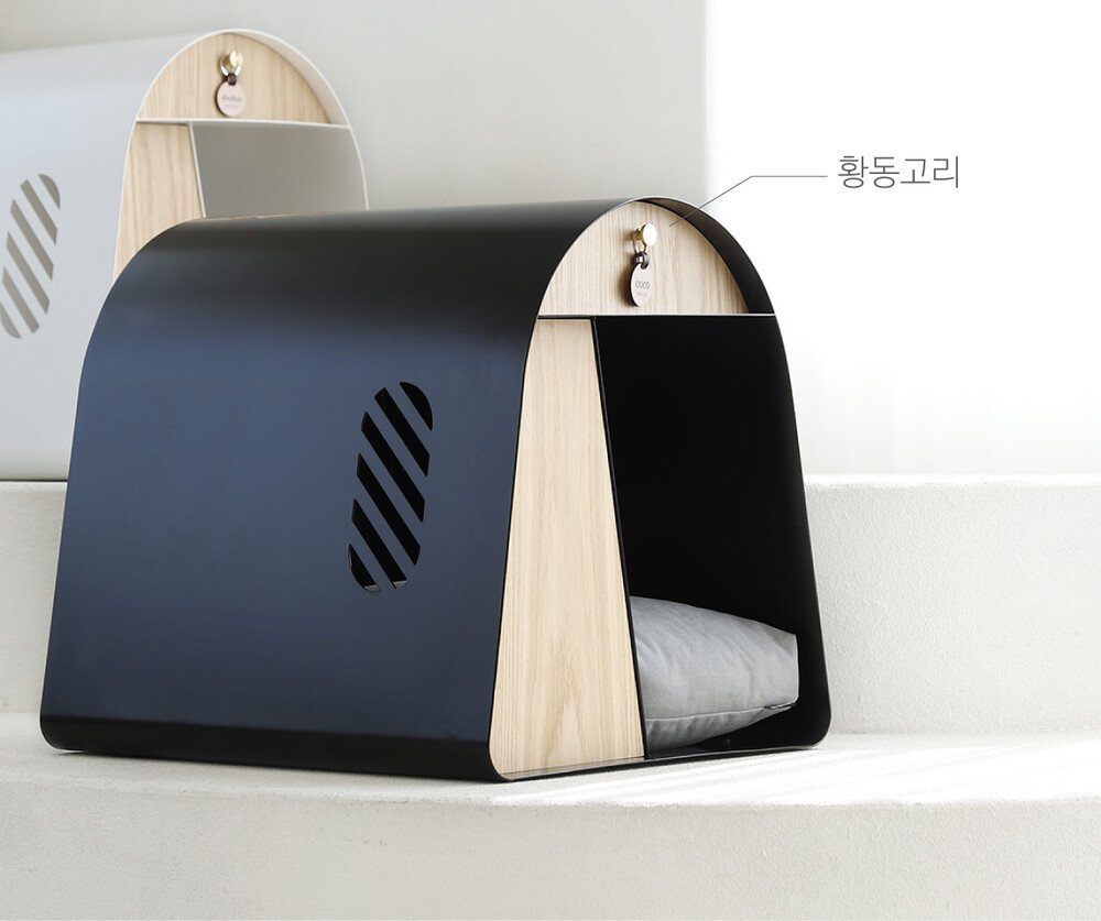하우스 정면 위에는 반려동물의 이름을 걸 수 있는 황동고리가 부착되어 있습니다.
