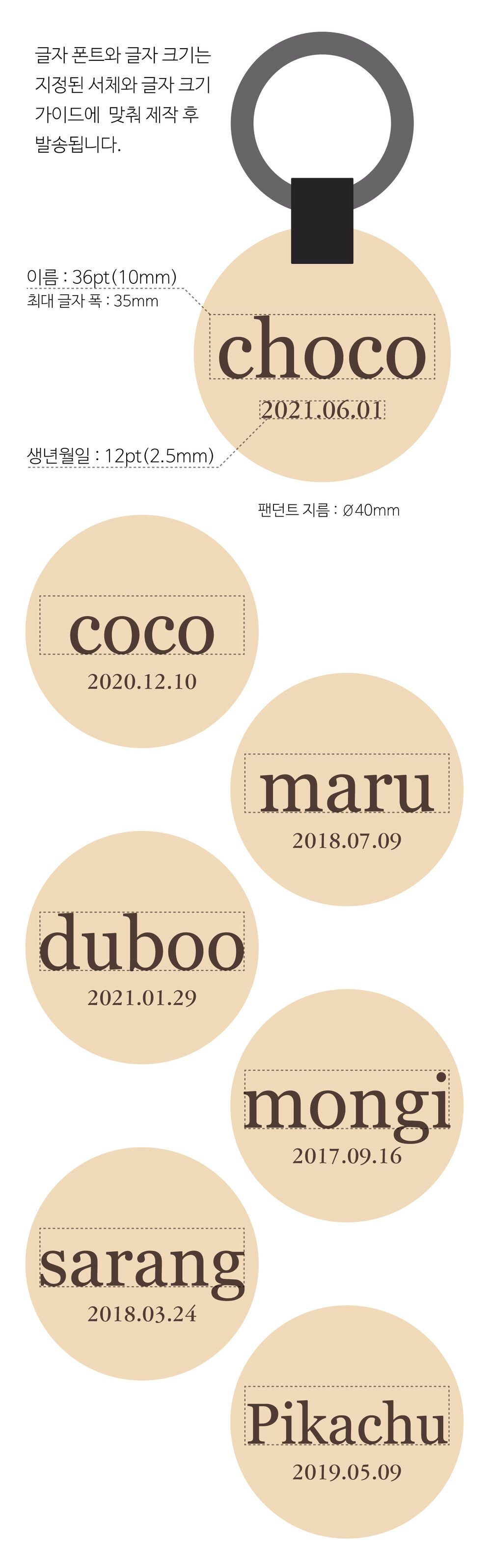 전면에는 반려동물의 이름과 생년월일을 레이저마킹으로 글자를 새깁니다.