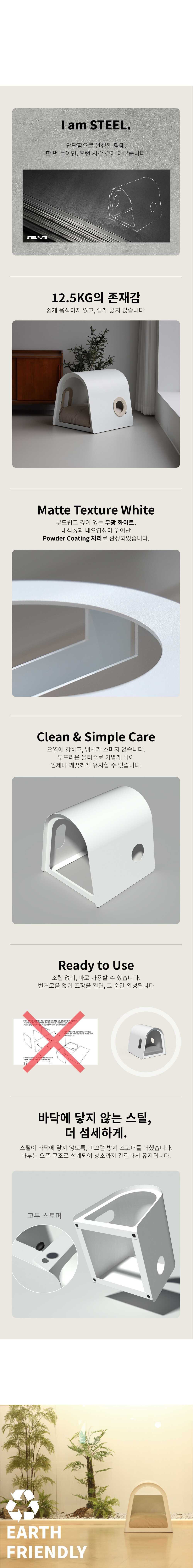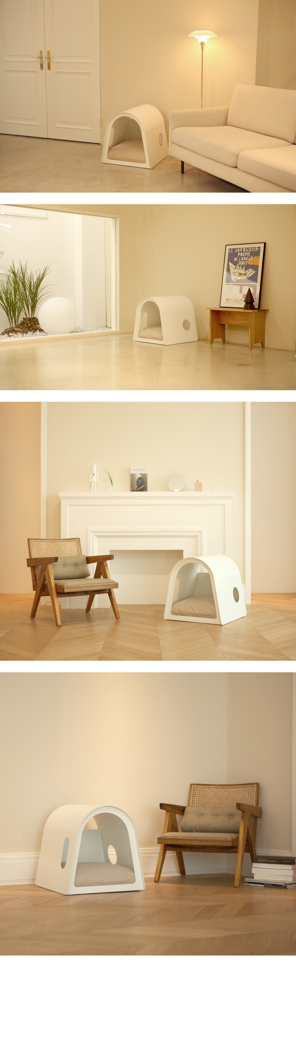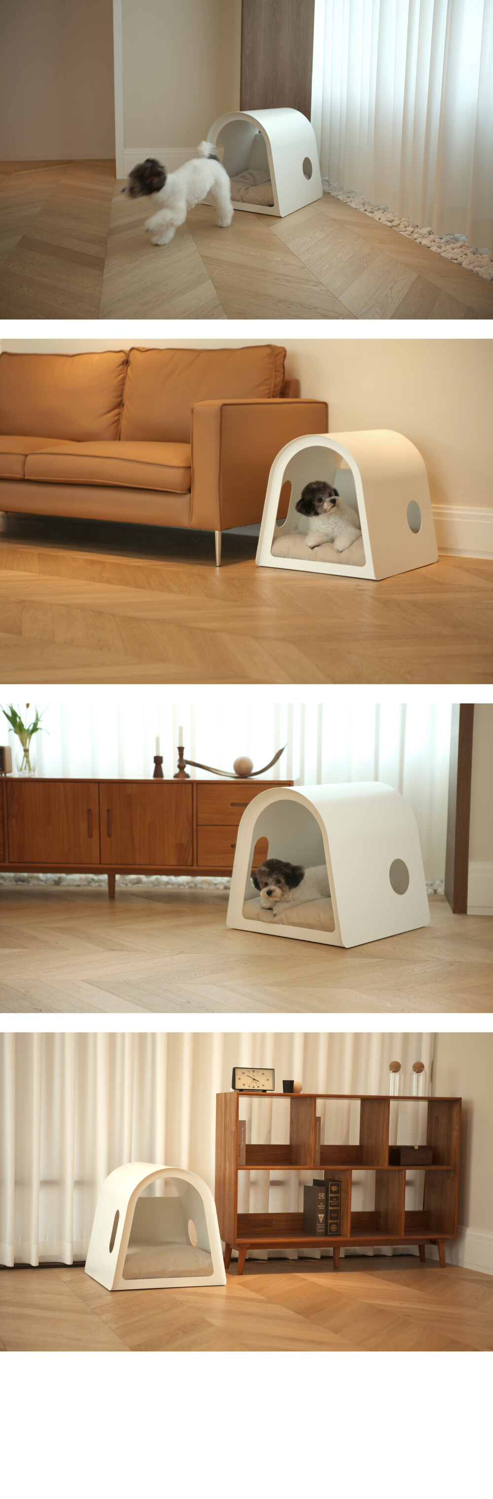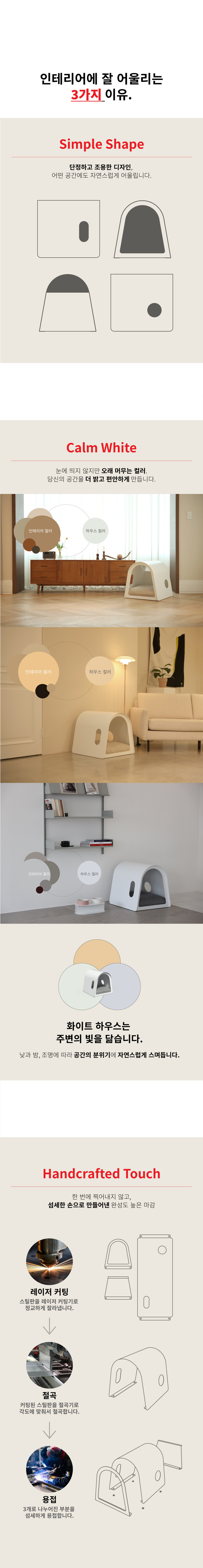 라운드하우스301은 부드럽고 유려한 곡선의 심미성을 극대화한 하우스 입니다. 미려한 외관뿐만 아니라 효율적인 공간으로 반려동물에게 편안한고 안정감있는 공간을 제공합니다.