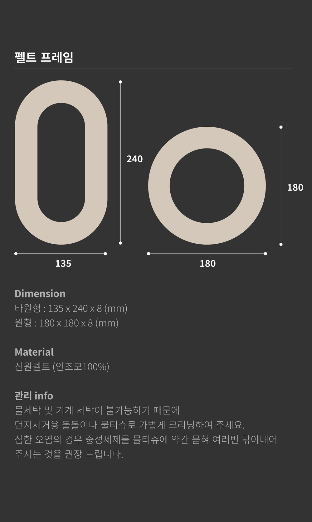 A라운드하우스601과 라운드하우스301에 사용할 수 있는 펠트 프레임 입니다.