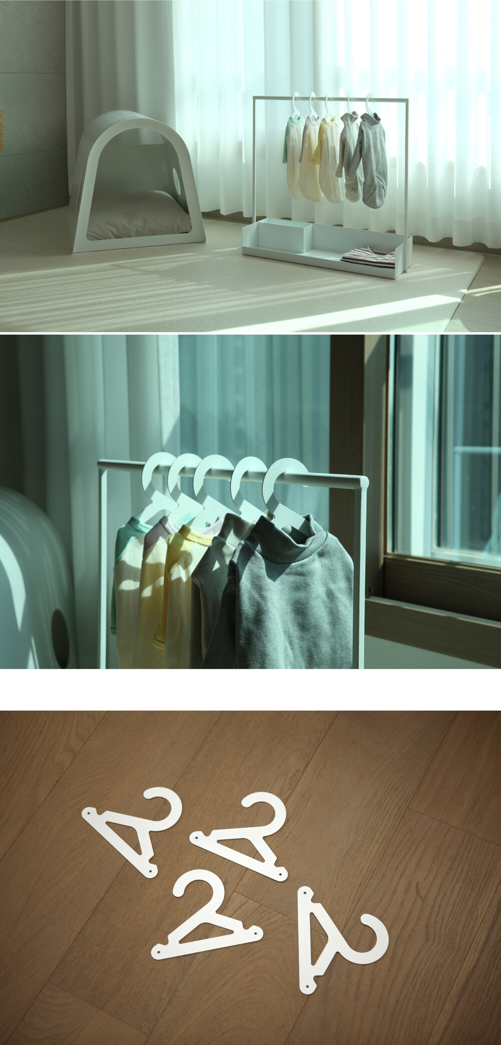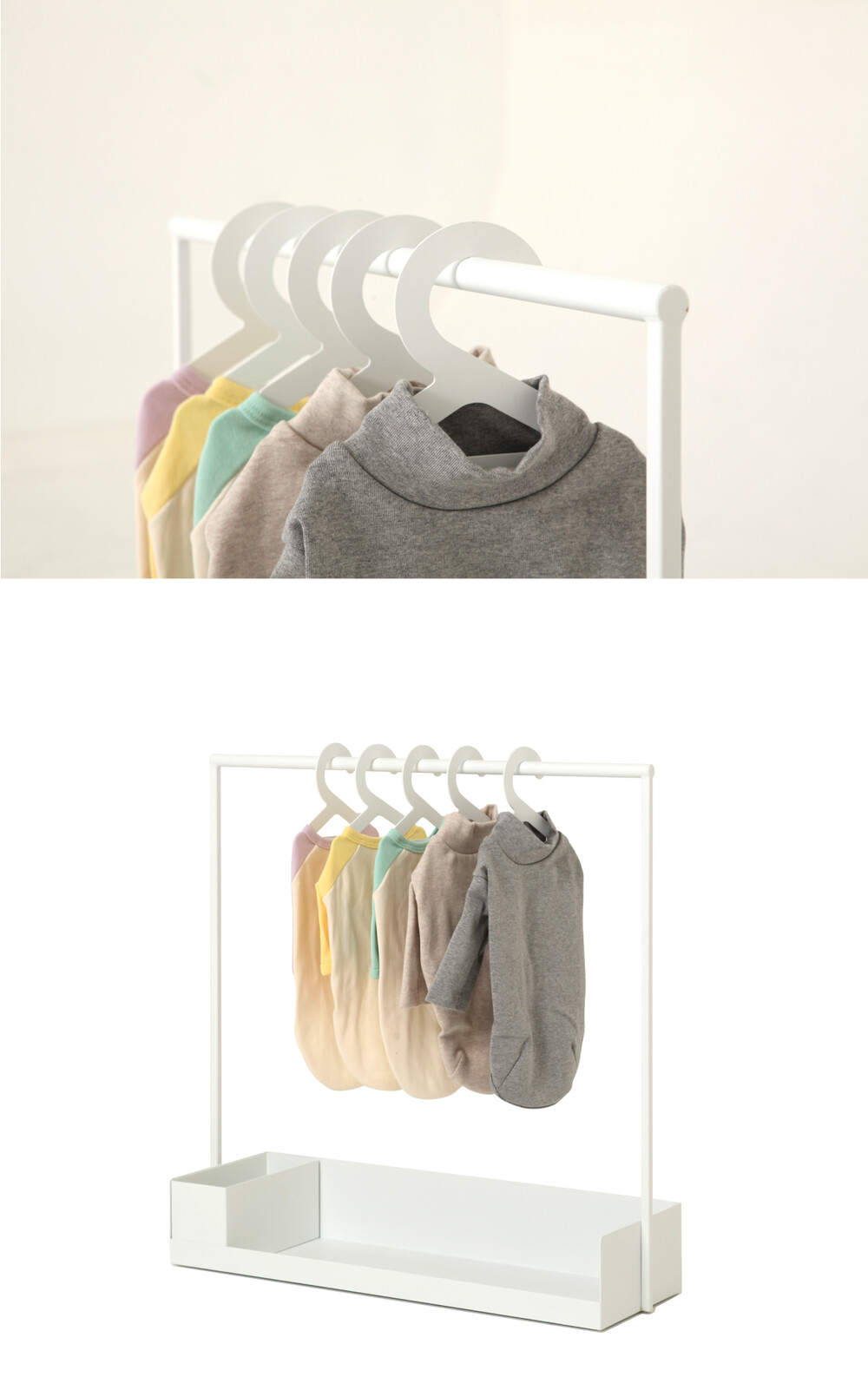 옷걸이의 가장자리는 모두 둥근형태로 되어 있어 옷이 걸리지 않도록 제작되었습니다.