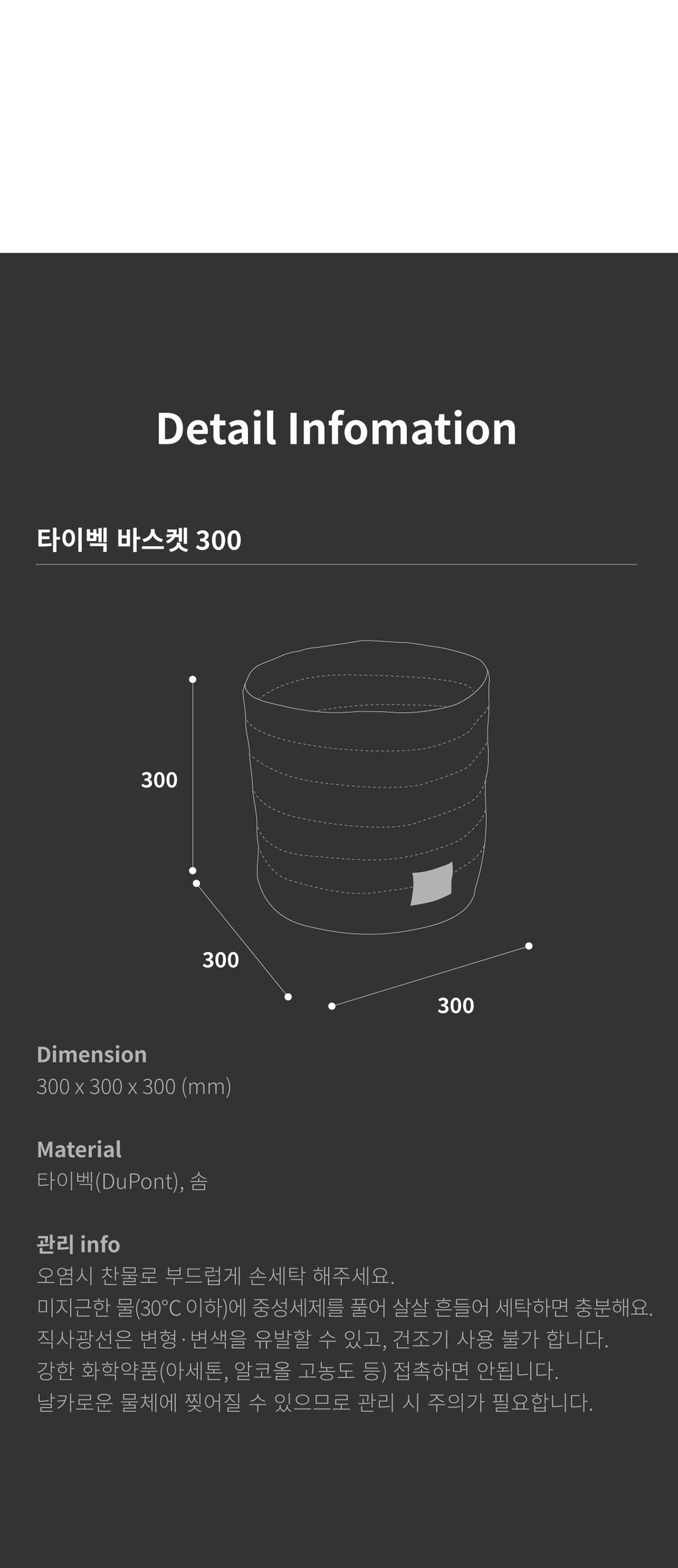 듀폰 타이벡으로 만든 가볍고 튼튼한 감성 바스켓 입니다.